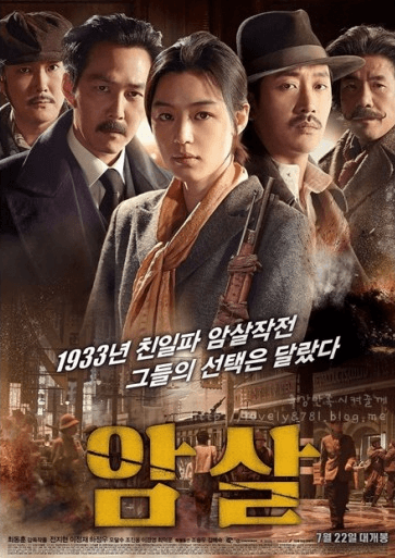 2015년 7월 개봉된 영화로 최동훈 감독의 1270만 관객을 기록하는 영화로 임시정부시기 친일파 암살 작전을 소재로 만들었다. 평론가 6.13, 네티즌 8.5 등의 높은 평점이며 암살작전을 수행하는데 예측할 수 없는 긴장감을 더해 관객의 마음속에 민족의 아픈 역사를 자아낸 시대극이다. 이 영화에서 우리나라 독립운동역사의 훌륭한 인물인 약산 김원봉과 백범 김구 선생의 등장은 나에게 아주 참신한 볼거리를 제공했다고 생각한다. 우리가 배웠던 책에 간략하게 등장하는 인물이 영화에서 살아 조선의 독립을 위해 친일파를 처단하는 임무를 내리며 실행하는 역사를 영화를 통해 볼 수 있어서 너무 좋았다. 그리고 극 중 종종 등장하는 배우들의 개그 대사들이 스토리를 지루하지 않게 만들고 영화에 몰입하게 한다. 배우들의 훌륭한 연기와 색깔 있는 캐릭터들, 일본에서도 개봉되었다는 점으로 적극 추천하는 영화입니다.